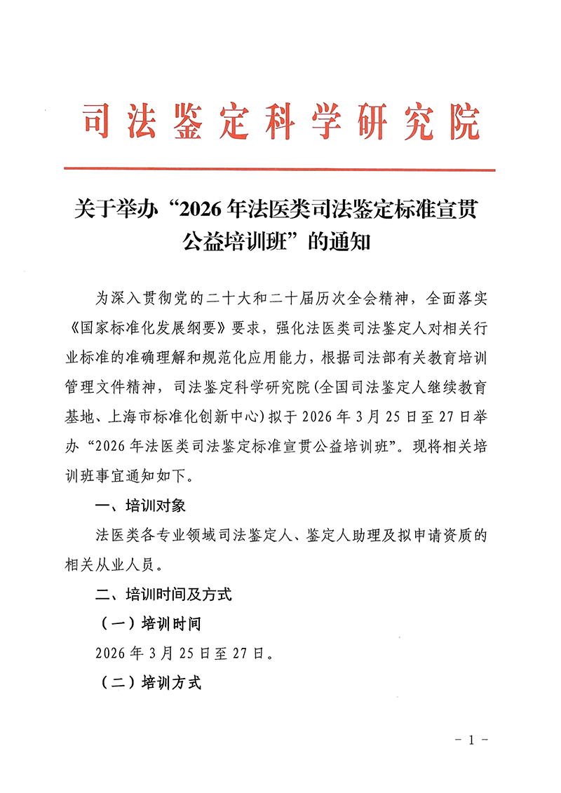关于举办“2026年法医类司法鉴定标准宣贯公益培训班”的通知