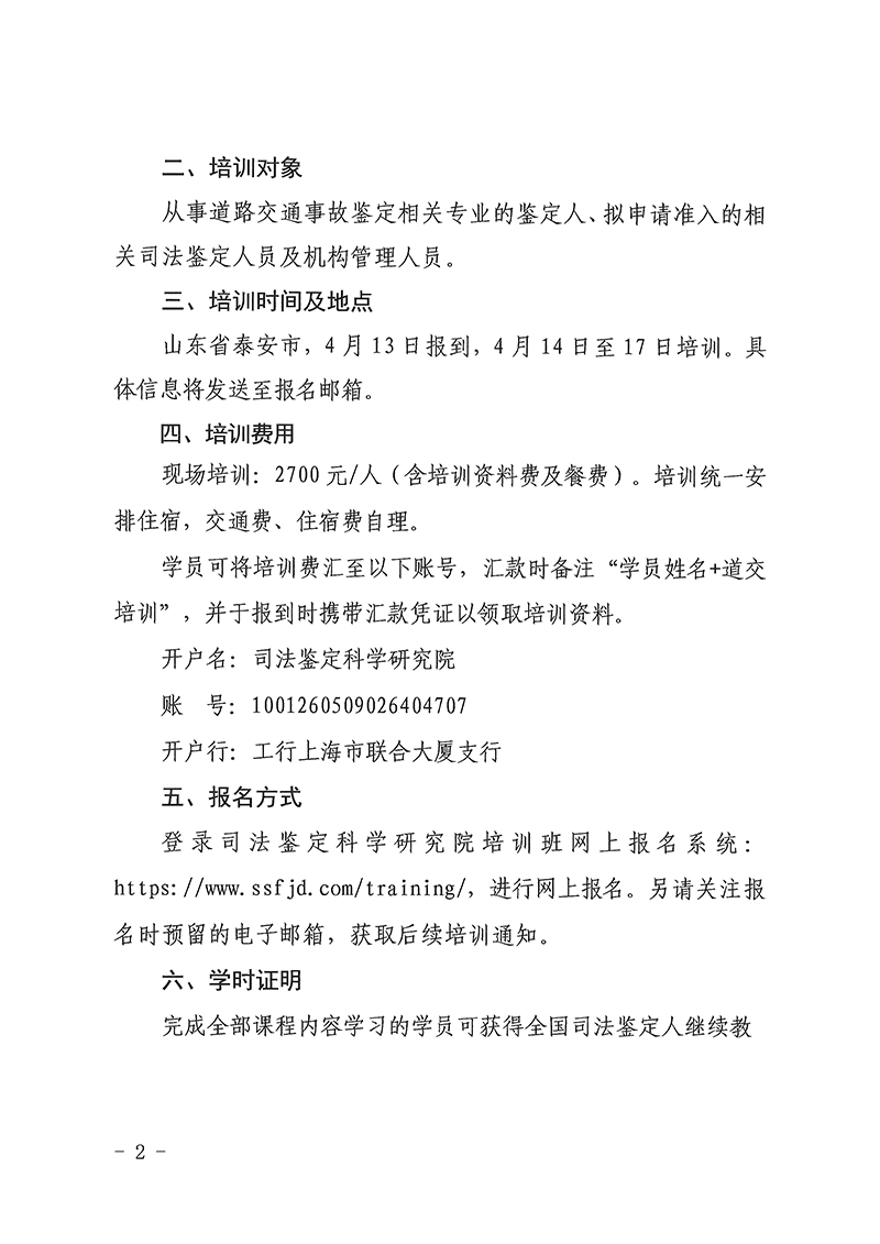 关于举办“2026年道路交通事故鉴定新技术应用及能力验证点评培训班”的通知
