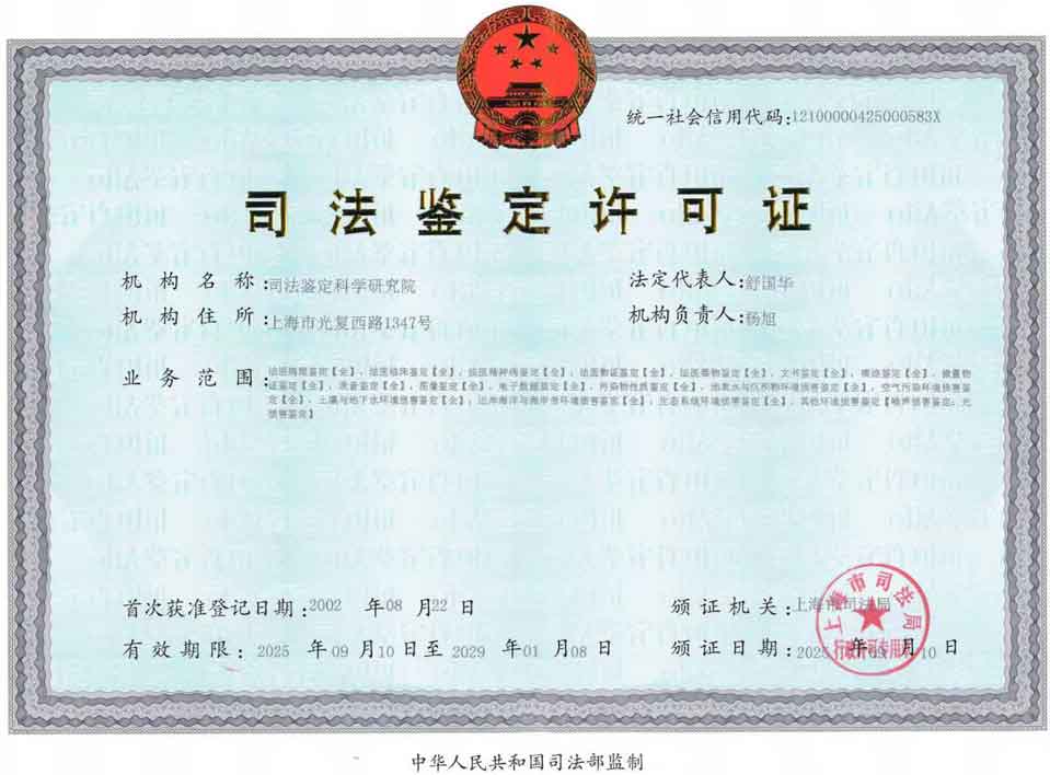 本院依法在上海市司法局审核登记,是具有合法主体资格的司法鉴定机构。