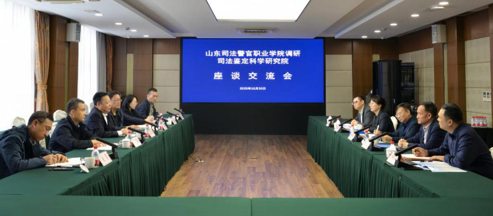 2025年10月30日,山东司法警官职业学院党委书记陈久亮一行来司鉴院调研,双方围绕学科建设、教育培训、科学研究等内容开展座谈交流,党委副书记、院长舒国华,党委委员、副院长李乃宝及相关部门负责同志参加。