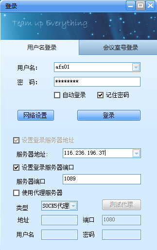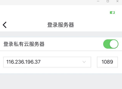 点击右上角设置按钮,输入服务器地址。服务器地址为116.236.196.37;端口为1089。如下图: