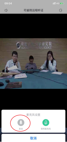 点击“音频”按钮,打开本地音频设置。每次进入会议室后需要点击“发言”按钮方可说话。可根据需要点击放弃发言或禁止麦克风。