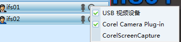 点击左侧与会用户用户名,出现视频设备选项卡。